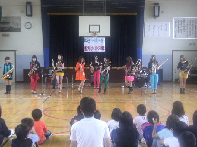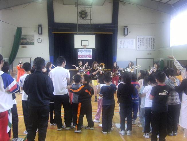 女性ばかりのブラスグループです、コンサートの翌朝武佐小学校へでの演奏会です