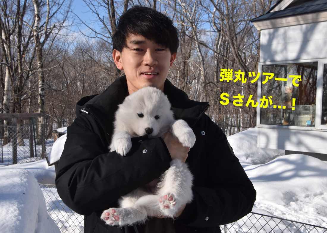 午後、千歳も中標津空港も強風で心配だったのですが、無事にSさんが百友坊滞在2時間の弾丸ツアーで、子犬たちに会いに来てくれました。数年前に中標津で研修医をされてた際にもサモたちを可愛がってくれました。サモ好きなお医者さん、素敵です!