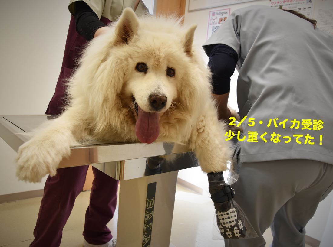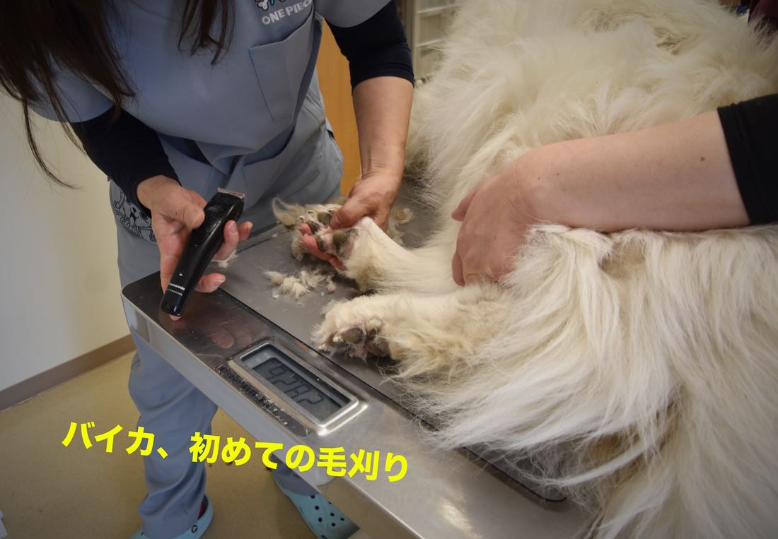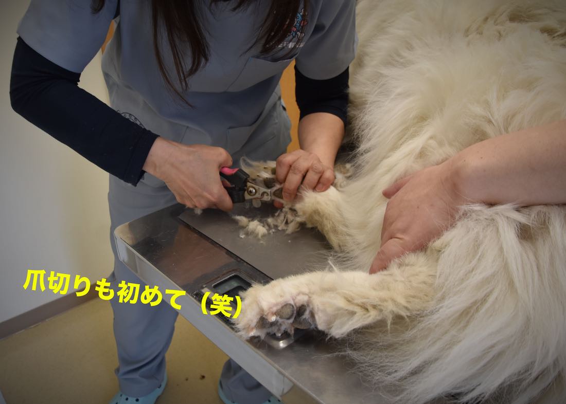 でもバイカは闘病期間で伸びてました。病院で初めてのカットをしてもらいました。これで左足の患部を保護してる靴下に爪で穴が開くのを防止できそうです。