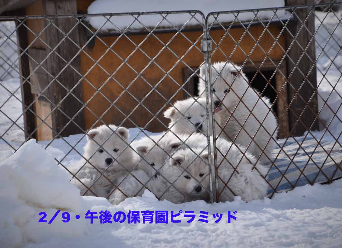 『如月九日…午後1時30分/−6.3℃・薄曇り/三段重ねに見えたよ子犬たち!』