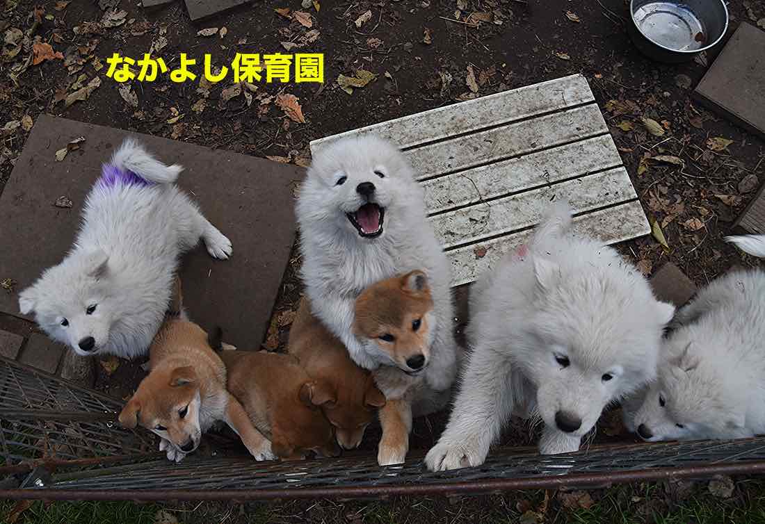 50年を繋いできた柴犬、フタバの焦げパンたち、35年、石川家で歴史を重ねてきたサモエドのオリヒメのモフモフたち、みんな順調に成長してます。
