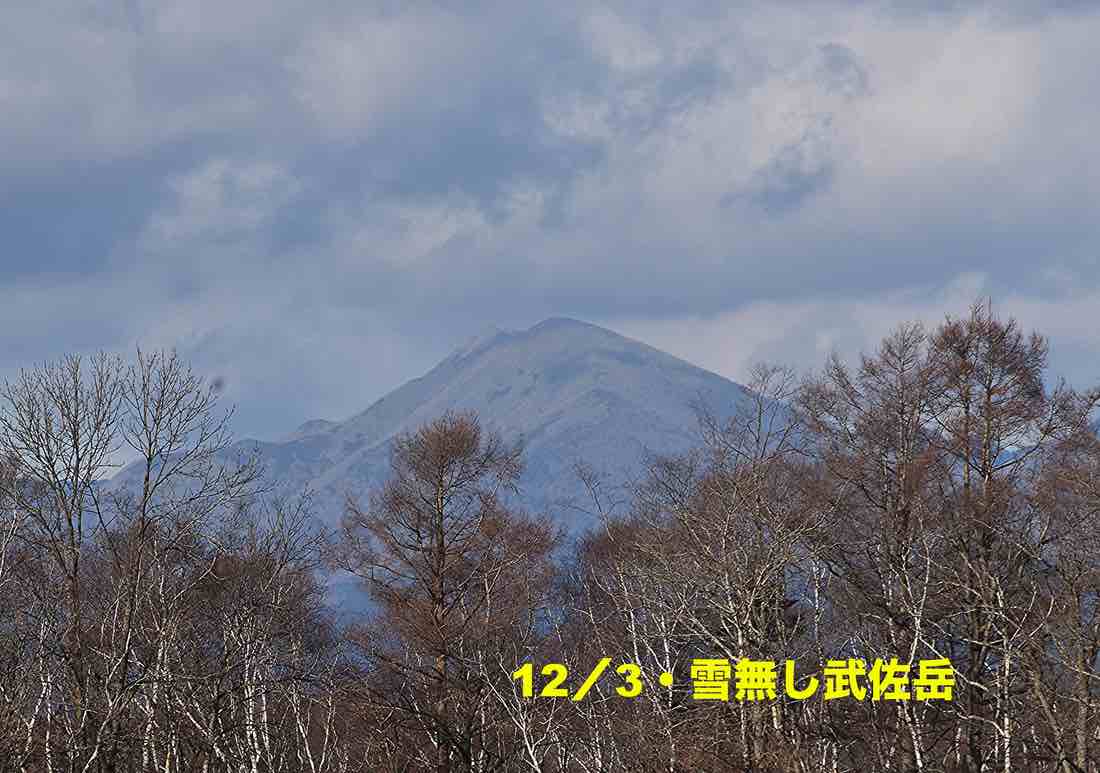 『今(12/4・00:20)、雪が北風に舞ってます!』 町のシンボルの武佐岳は、先日、一瞬だけ白くなりましたがすぐに消え、この時期に冠雪無しの姿が続いてました。それも今夜の雪で師走らしくなるでしょう。雪化粧をNikon君に収めるのが楽しみです。 全国各地、冬の訪れのようでうね、どうぞ暖かくしておやすみ下さい。