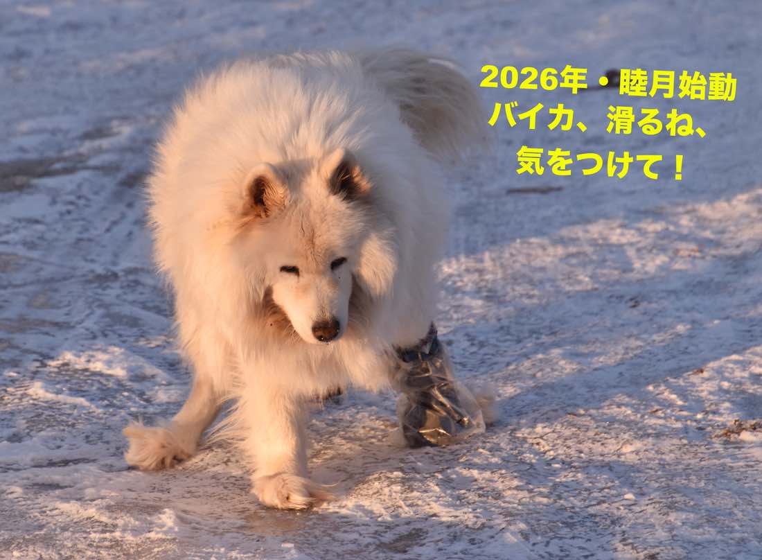 足先に問題(癌)を抱えてるバイカも難儀してます。真剣に足を進める前方を見つめ、確かめながら歩を進めてます。それでも滑り、伏せのかたちで倒れることも…。起き上がろうとしても後ろ足が踏ん張れず氷結路面と格闘してます。
