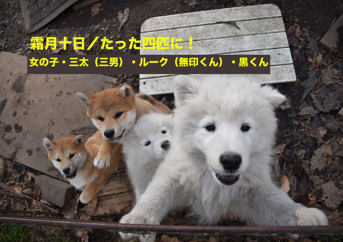 八匹でにぎやかだった保育園も今日から四匹、園児は半数になりました。柴が二匹、サモが二匹、ケンカをせずに仲良く過ごしてます。